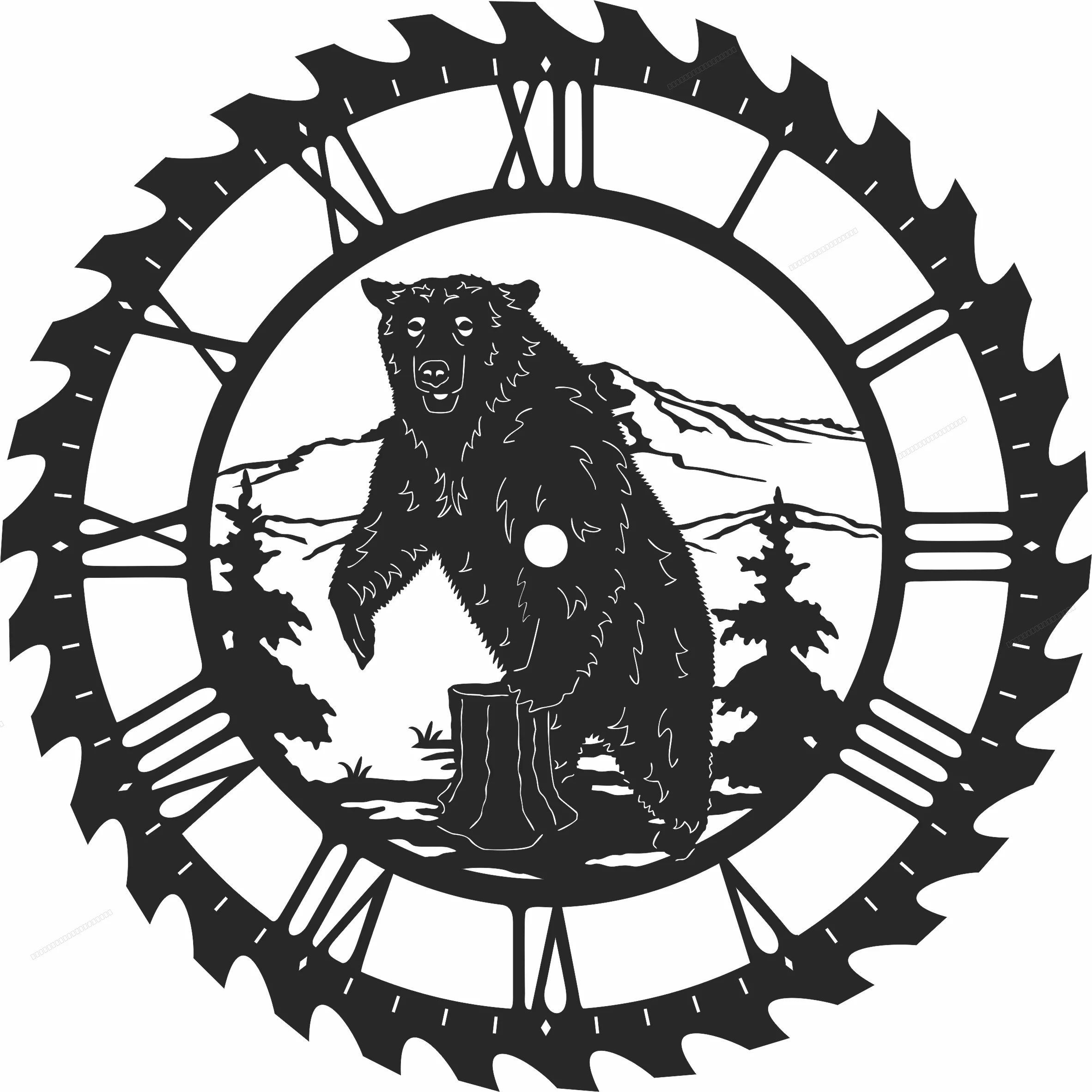 Bear sceen saw wall clock - Free dxf files ready to cut - Download free dxf for cnc plasma cutting