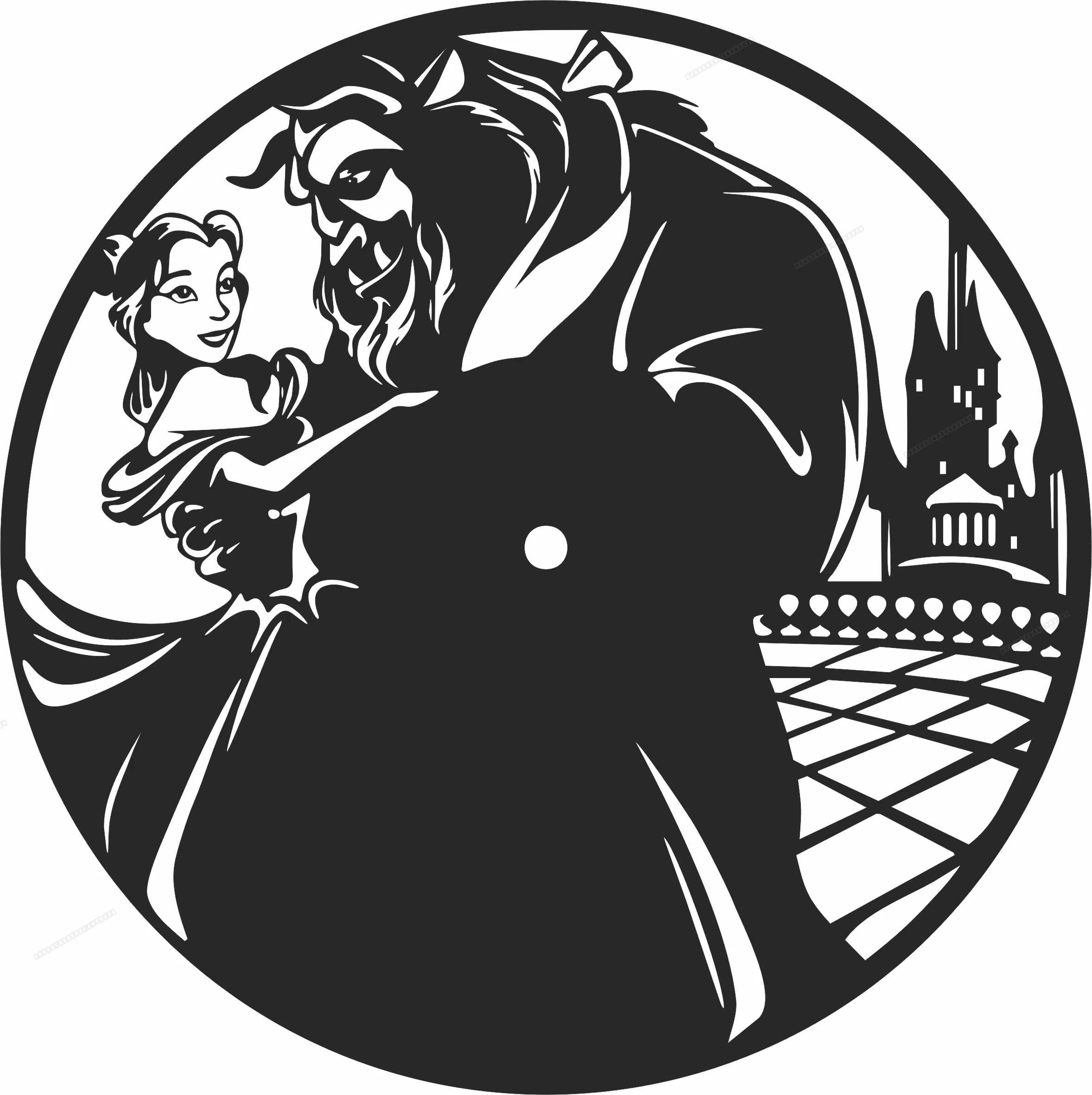 Beauty and the beast wall clock - Free dxf files ready to cut - Download free dxf for cnc plasma cutting