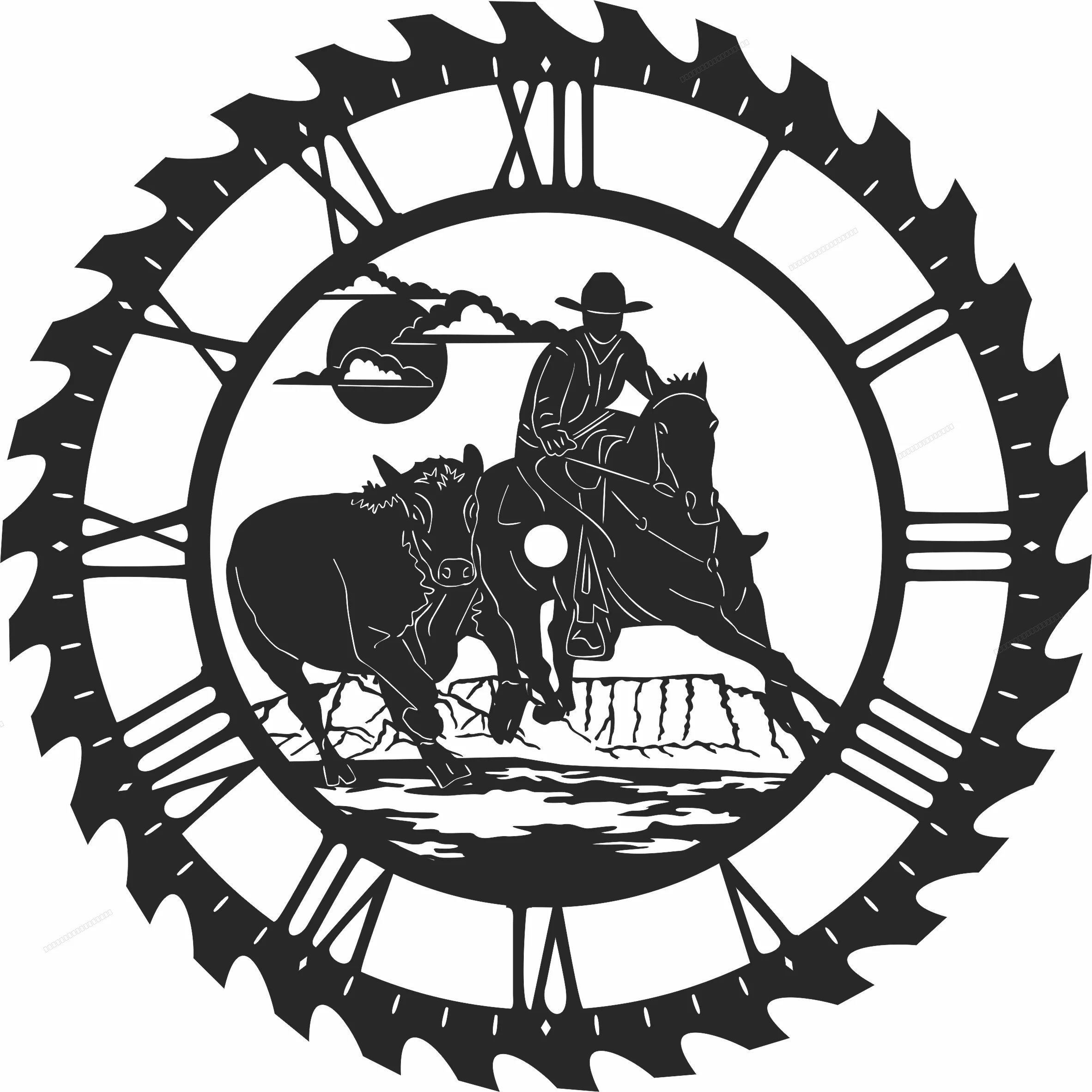 Cowboy sceen saw wall clock - Free dxf files ready to cut - Download free dxf for cnc plasma cutting
