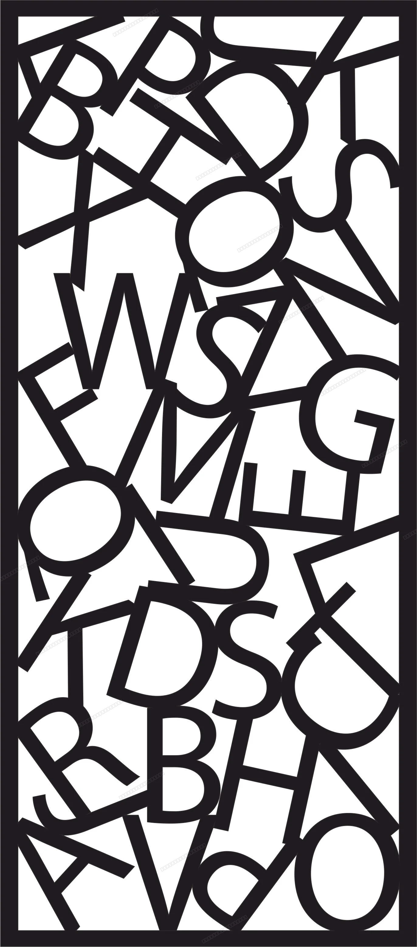 Decorative alphabet letters panel door wall screen pattern - Free dxf for laser cutting and plasma - Download free dxf for cnc plasma cutting