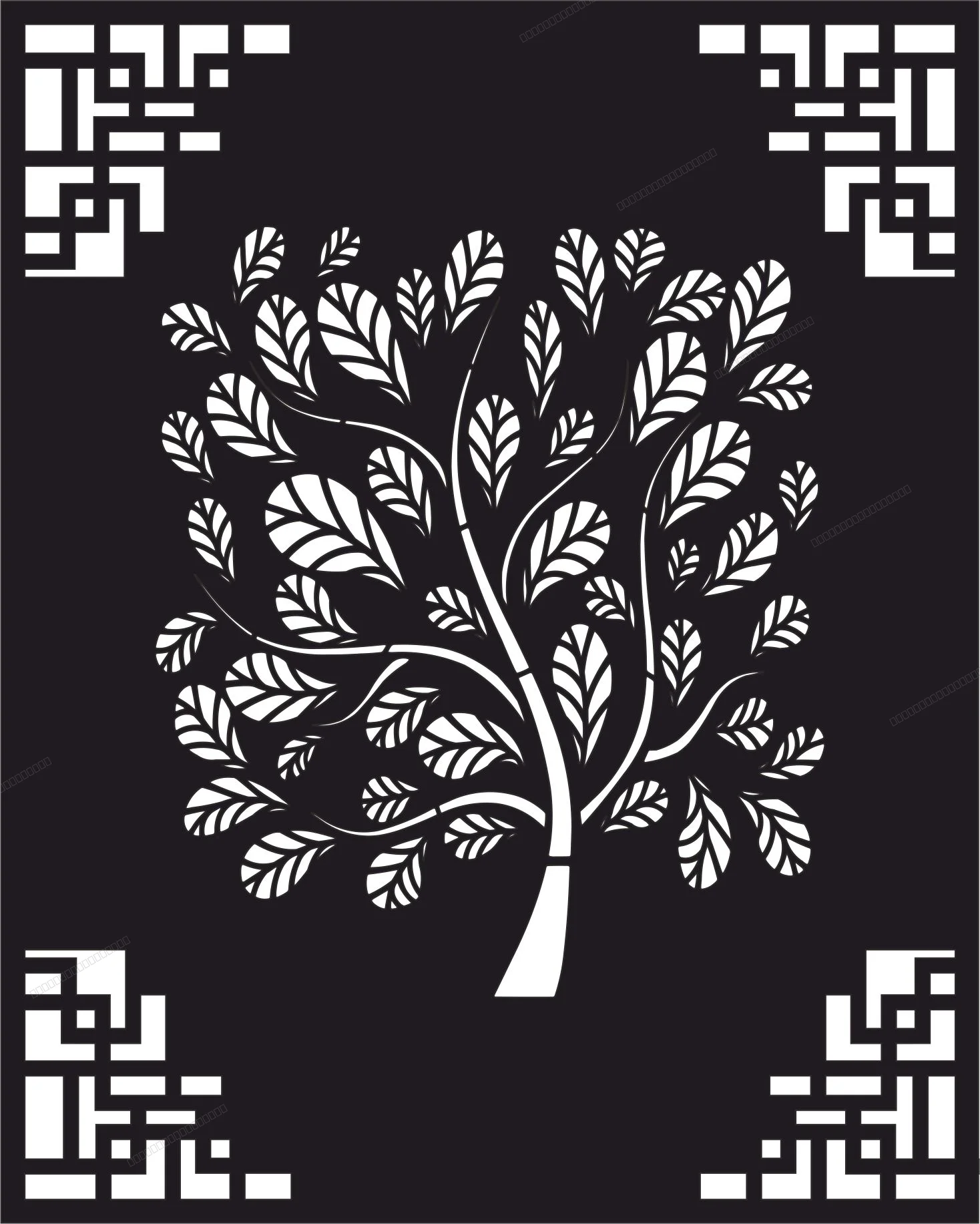 Decorative panel door wall screen tree pattern - Download free dxf for cnc plasma cutting
