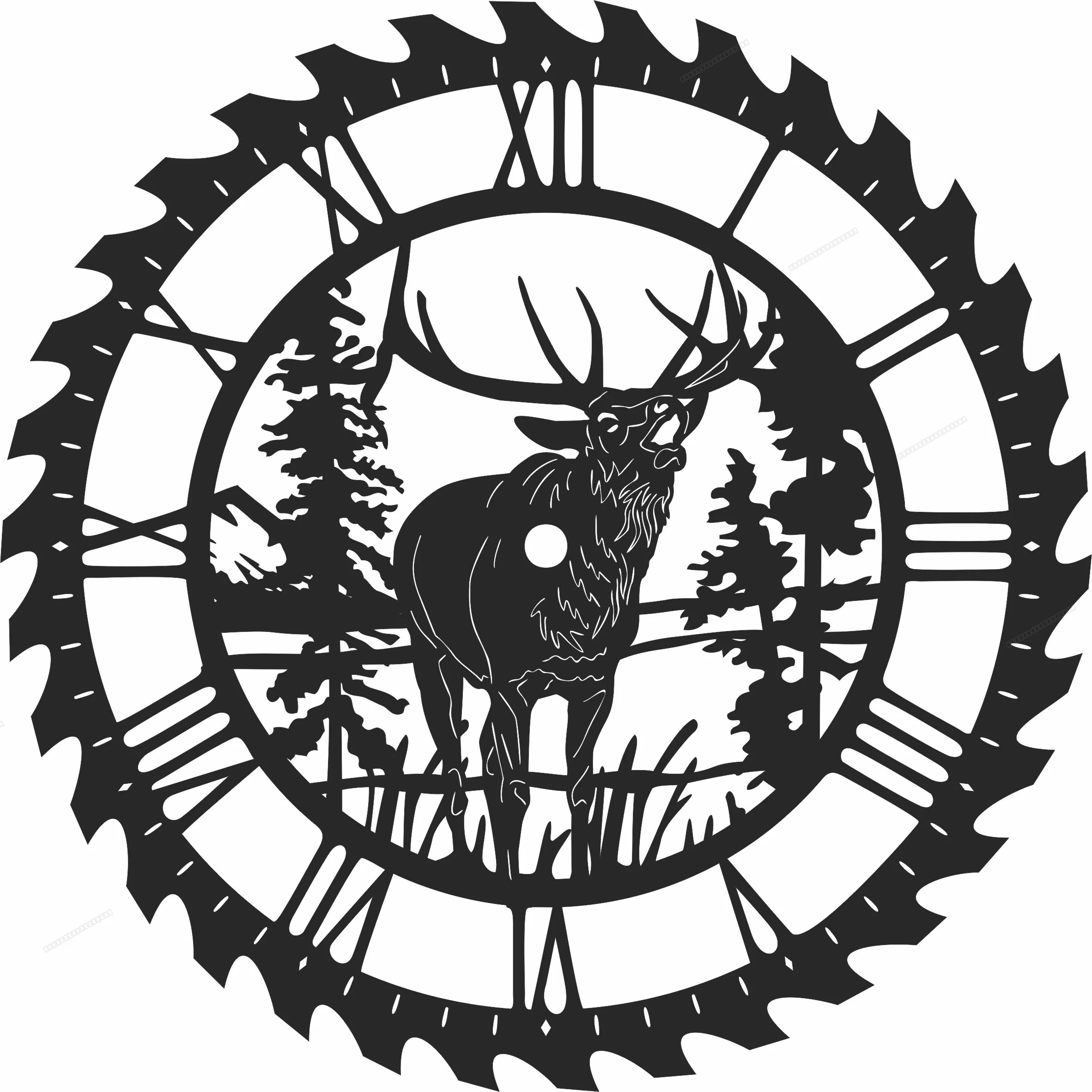 Elk sceen saw wall clock - Download free dxf for cnc plasma cutting