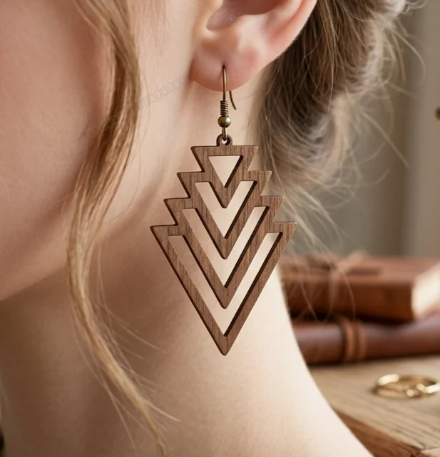 Geometric Art Deco Laser-Cut Wooden Dangle Earrings - Download free dxf for cnc plasma cutting
