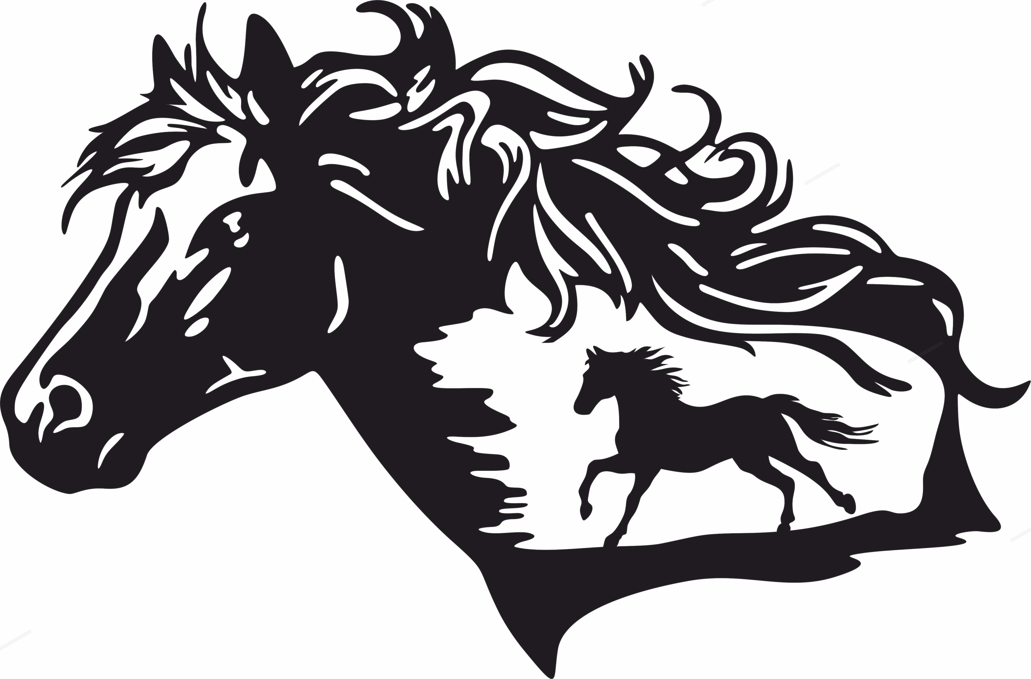 Horse scene clipart - Free dxf for laser cutting and plasma - Download free dxf for cnc plasma cutting