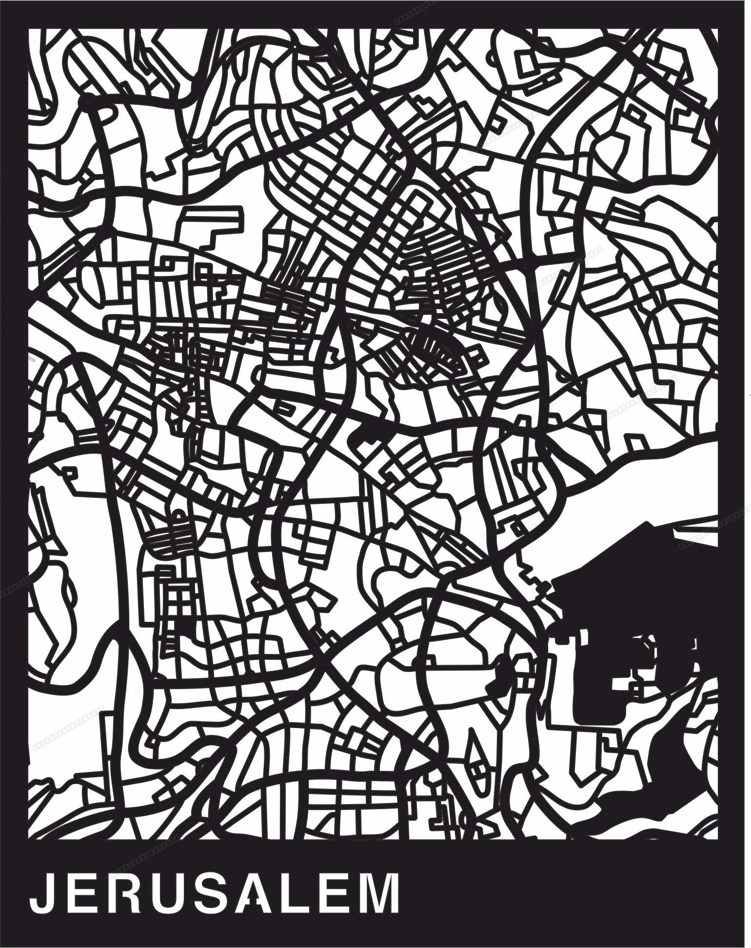 Jerusalem map cutmap israel wall art - Free dxf files ready to cut - Download free dxf for cnc plasma cutting