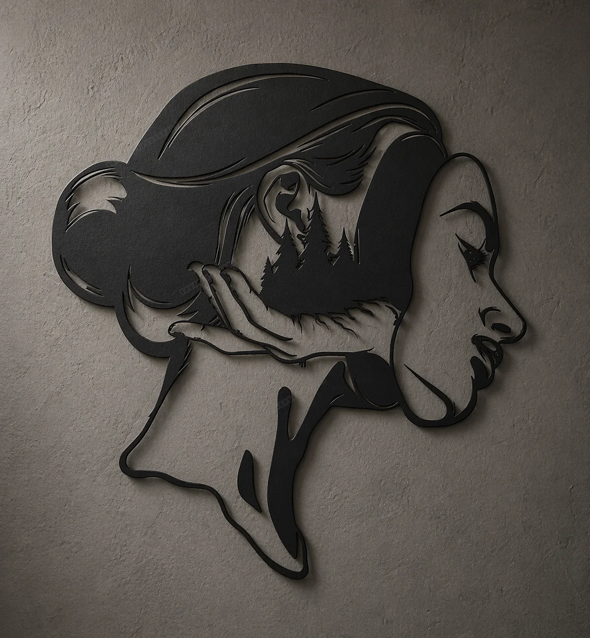 Surreal Woman Mask Forest Hand Vector Art - Download free dxf for cnc plasma cutting