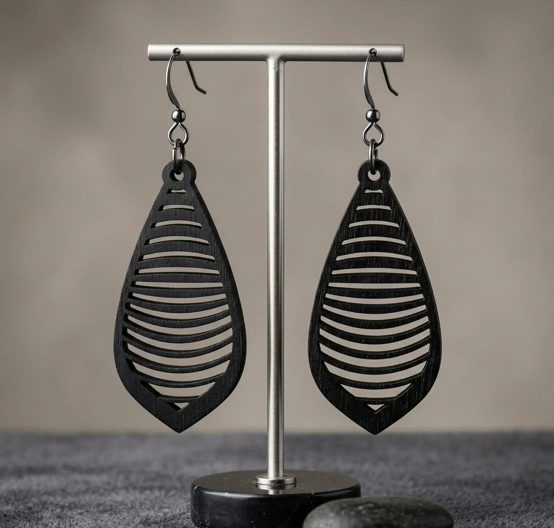 Teardrop Dangle Earrings with Horizontal Slatted Geometric Design - Download free dxf for cnc plasma cutting