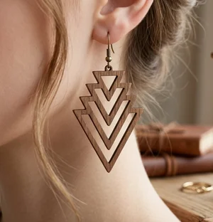 Geometric Art Deco Laser-Cut Wooden Dangle Earrings